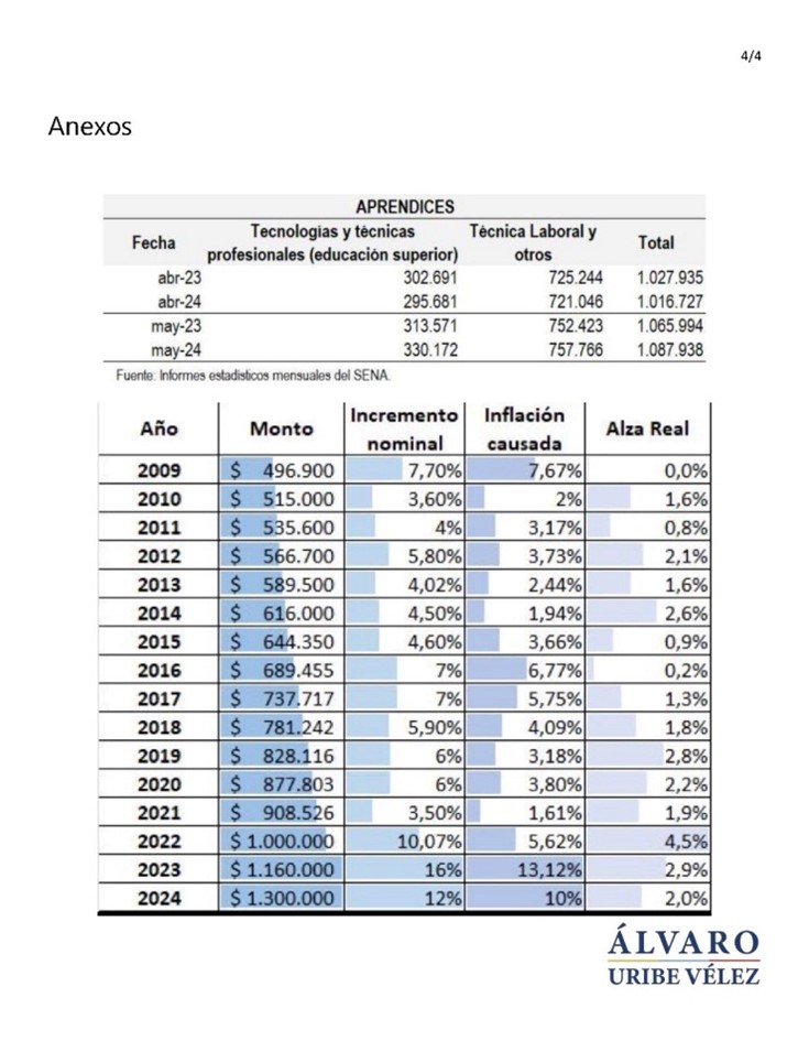 1. Por ejemplo, el aumento del salario mínimo, durante los tres últimos años, uno del Presidente Duque y dos del Presidente Petro, ha elevado el ingreso real de los trabajadores en un 9%. (Ver cuadro anexo).