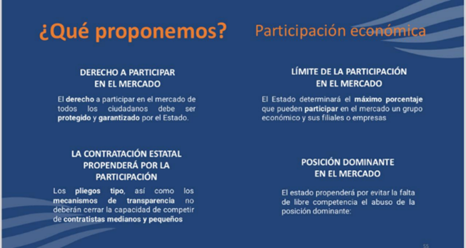 ¿Cómo que combatir la “posición dominante en el mercado”? Lo grave sería que las empresas sean prebendarias y corruptas, no que sean eficientes y exitosas. Si tienen una gran cuota de mercado, no es problema, si esa participación se logra a través de la competencia. Las regulaciones excesivas y las decisiones arbitrarias que propone el proyecto perjudicarán a las empresas más exitosas y, por ende, al Estado y a los consumidores.