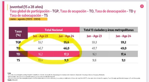 Muy preocupante que desde junio de 2023 a hoy, la tasa de desempleo desestacionalizada crece de 8,8% a 10,2%!! Las cifras de empleo se están deteriorando mes a mes.” (Septiembre 30)