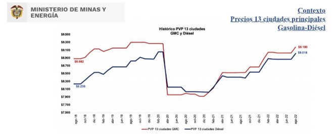 1. Seguimos hablando del tema porque dándole continuidad a lo que nosotros arrancamos a hacer en el cierre de diferencial de precios de combustibles (ver gráfica donde se dieron aumentos de precios graduales tanto en ACPM como en gasolina para ir cerrando la brecha por parte nuestra ) y ustedes lo continuaron solo en gasolina , se logró con éxito cerrar la brecha de diferencial de precios en gasolina, como se lo he destacado (nunca dejaría de hacerlo!! ).