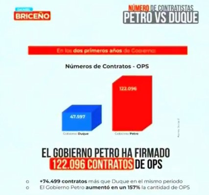 Finalmente mire que @Danielbricen le ayuda con otra idea para bajar el derroche. No siga creciendo la burocracia en contratos de prestación de servicios. No le parece exagerado crecer esa nómina en el 157%!!” (Octubre 4).