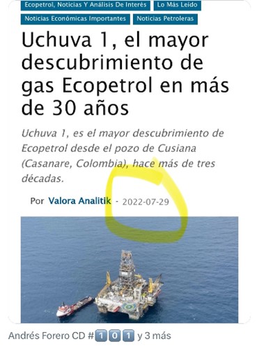 (Cita de La FM, @lafm, del 4 de octubre: “Nuevo pozo de gas en Colombia, el más grande en tres décadas: ¿dónde está ubicado? http://dlvr.it/TDzh8q #LasNoticiasComoSon”)