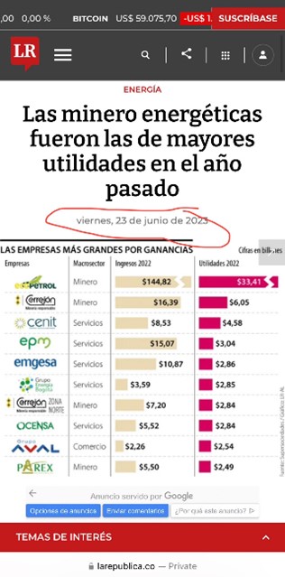El sector que usted llama “diezmado y endeudado” era, en realidad, pujante, resiliente y generador de riqueza. En 2022, pese al impacto de la pandemia, las empresas del sector minero-energético, incluyendo varias del sector eléctrico, fueron las que reportaron las mayores utilidades (ver foto 1).