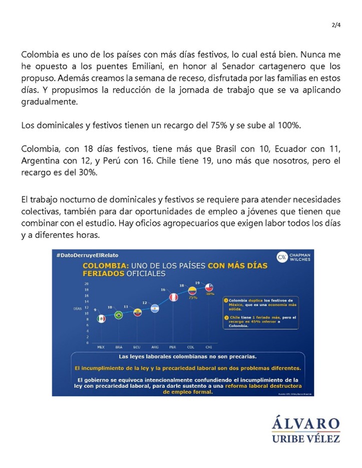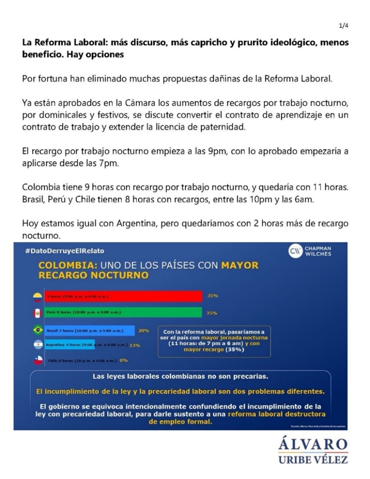 “Con la Reforma Laboral Colombia quedaría con 11 horas de Recargo Nocturno, lo mayor de la región, solamente superado en una hora por Panamá y Guatemala.
