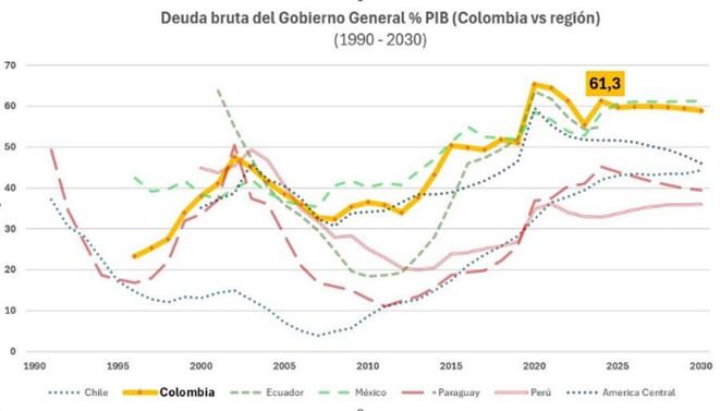 En la proyección que hace el FMI de los próximos 6 años se prevé que Colombia siga con una deuda alta, mientras que los demás países de la región tendrán unas finanzas públicas más sanas.