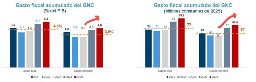 4- El gasto sigue desbordado. El gasto primario acumulado hasta marzo de 2025 fue de $82.6 billones, $15.6 billones por encima del promedio de los últimos 5 años.
