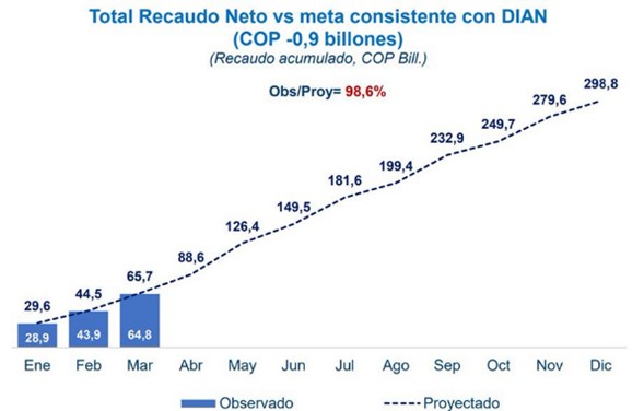 La caída se explica por un menor recaudo de Renta y Gravamen a Movimientos Financieros (4 x 1.000).