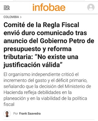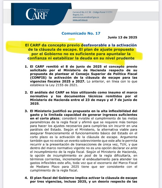 Las tasas de deuda crecen por esa incertidumbre fiscal y por haber aumentado el riesgo país y con ello el costo de la deuda, al haber suspendido, sin ningún argumento real, la regla fiscal. ¡¡No lo digo yo!! Lo dice @CARFColombia.